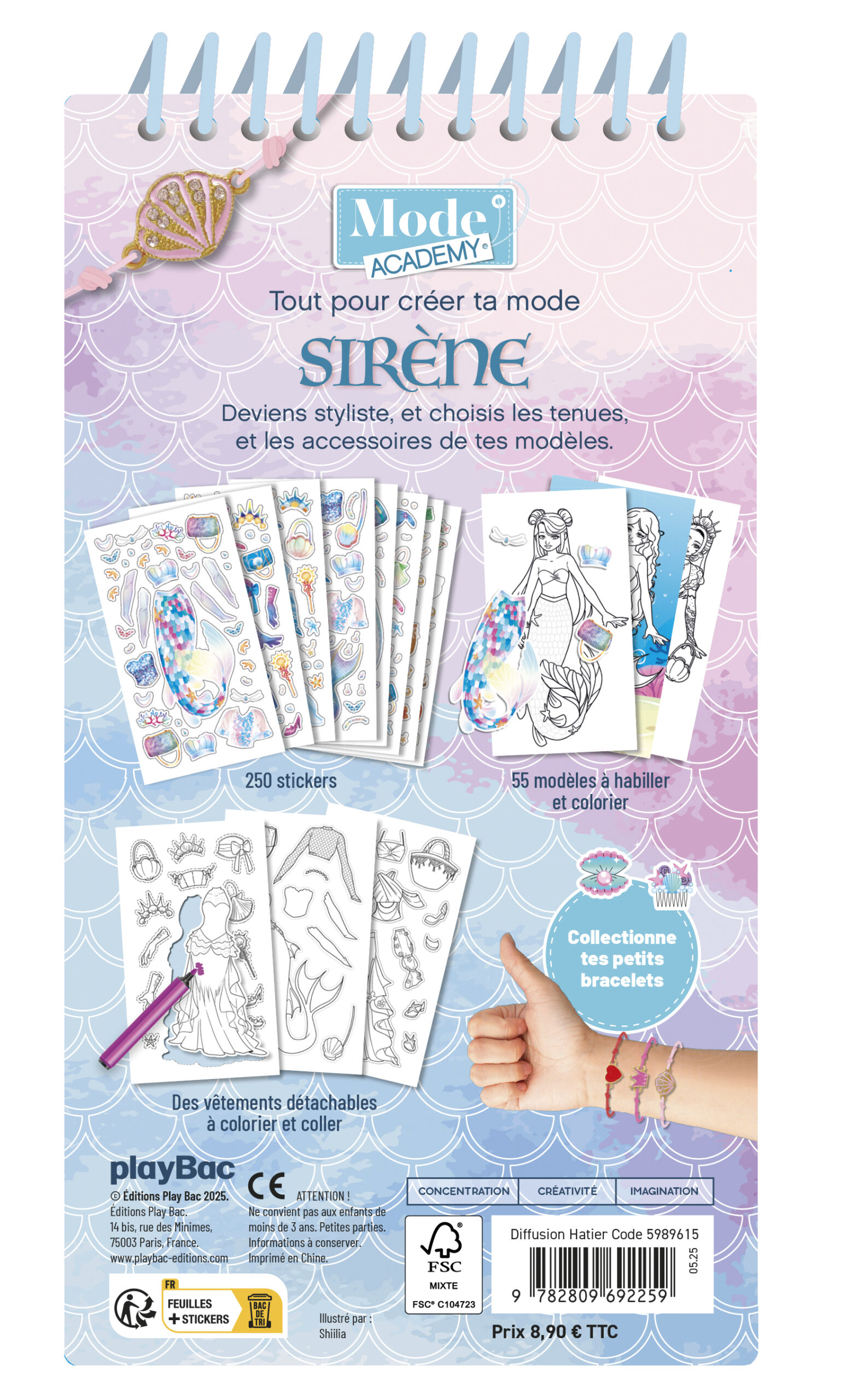 À l’intérieur, 250 stickers, 55 pages de modèles à habiller, des vêtements détachables à colorier et à personnaliser pour développer sa créativité et sa dextérité en toute autonomie.