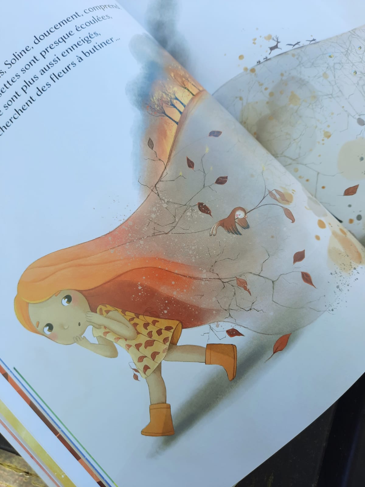 Soline est une petite fille amoureuse de la nature qui se sert de tous ses sens pour s’émerveiller. Elle possède une chevelure magique qui change à chacune des saisons, de ses émotions et dans laquelle fourmillent tous les trésors de la nature. Les fans de l’illustratrice seront ravis de retrouver toutes les couleurs et la poésie de ses dessins.