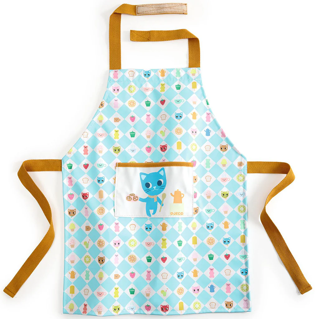 Un tablier pour s’amuser à cuisiner avec les grands sans se salir. Taille unique avec la possibilité de régler la sangle du cou par bande auto-agrippante et d’ajuster la taille à l’aide de liens à nouer. En matière lavable en machine à 30 °.