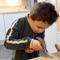 Hier, sur vidéo, j’ai vu mon petit-fils ( 4-5 ans ) clouer pour du vrai afin de monter un meuble avec son papa. Ce n’était pas évident mais il y est arrivé 🙂 ! J’ai vu son plaisir à manipuler le marteau puis sa fierté de sa réussite. Du coup, j’ai voulu vous rappeler cette belle collection de 4 boites ( véhicules – Espace – Robots – Jardin ) de chez Djeco.
