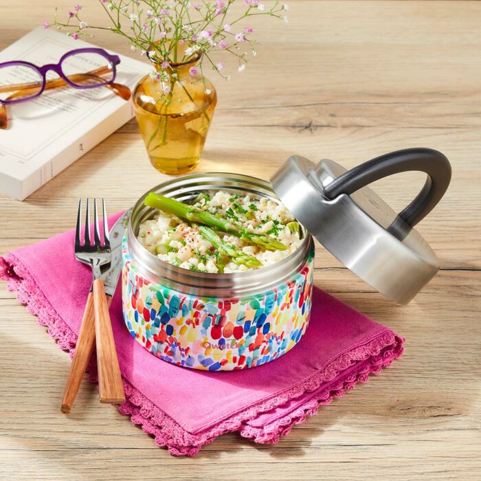 – Les parois des compartiments s’encastrent dans les fentes en silicone du couvercle et vous pouvez donc y placer des olives à l’huile, des sauces, … sans que les aliments se mélangent !