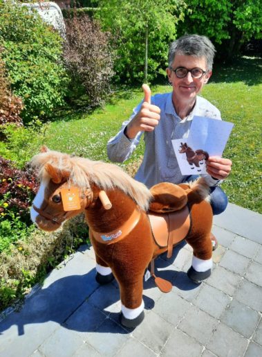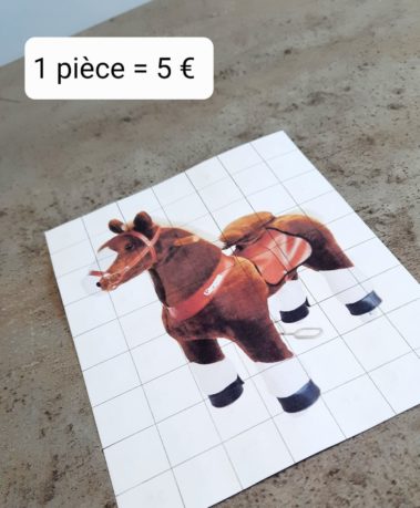 - Votre enfant collecte les pièces, les colle et quand le puzzle est complet, il vient au magasin avec son collage et il repart…à cheval