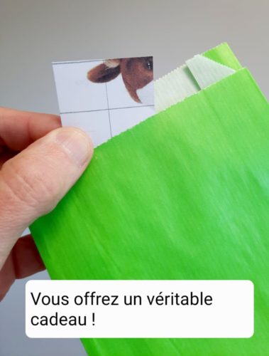 - Papy, mamy, tata, tonton, papa, maman, les amis, les voisins,…peuvent participer en venant au magasin acheter des pièces du puzzle dans une pochette cadeau.